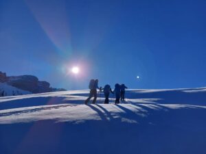 One-day snowshoe introduction courses for beginners and families. Learn how to use snowshoes, avalanche transceiver (LVS) and probe in a safe and playful way. Also suitable for children. A perfect first step into winter mountain adventures.